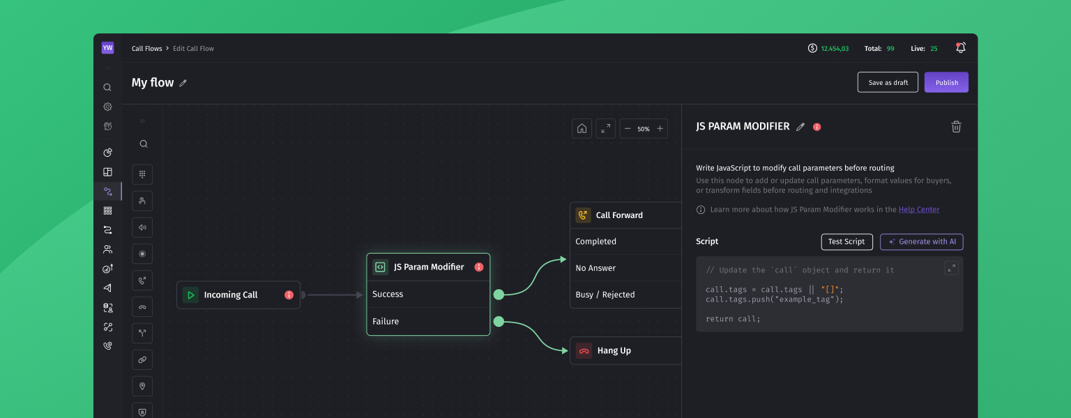 Weβve introduced a new JS Param Modifier component in the Call Flow builder.